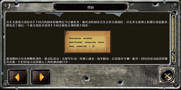 游戏期间会有各种随机事件:游击队活动;志愿军行动;封锁工商业、海军航线;以及陆军车辆、航空;因经济成功而获得额外资源。它们将显示在屏幕左上角的弹出窗口中。
