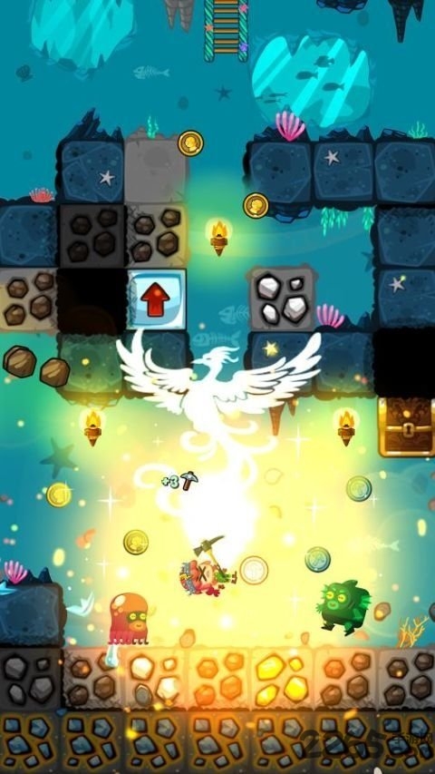 4、如果挖到了炸药,那么它就会帮助我们炸掉周围的土块,如果挖到了电钻,那么它会向下挖掘,帮我们自动钻开地底的土块。