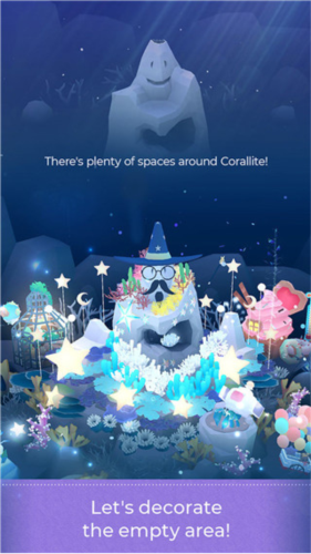4、我们还可以通过给鱼儿们拍照,完成目标、签到及每日任务,来获得相应奖励。如果不知道做什么,也可以点击右上角奖杯图标,完成任务,成长速度会更快。之后可以根据指引实现扩张,采到新地形,获得宽岩石和海胆,包括篱笆套景。点击神秘箱,会开到【海星】和一些生命额,还有可能是贝壳的饰装。