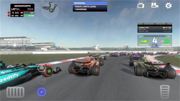 6、正式开始后你将和其他21位赛车手共同比赛,屏幕左边控制转向右边是油门和刹车,如果不习惯可以在设置里更换操控模式。