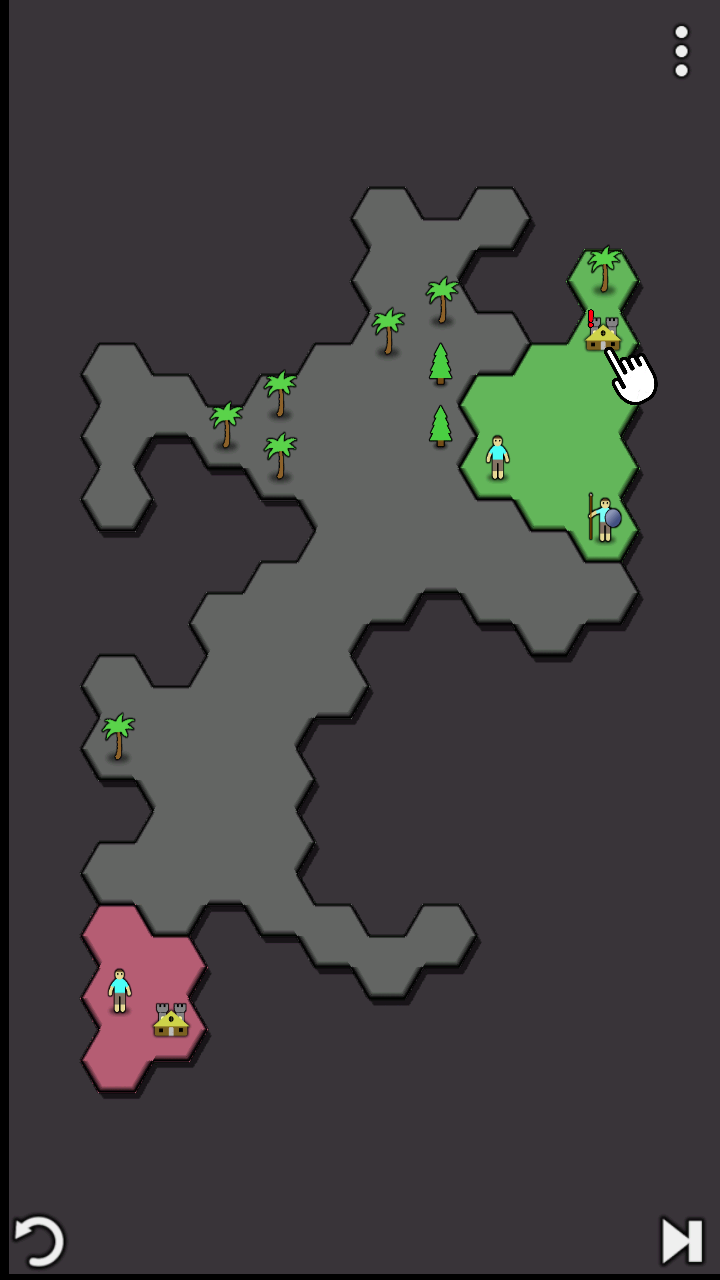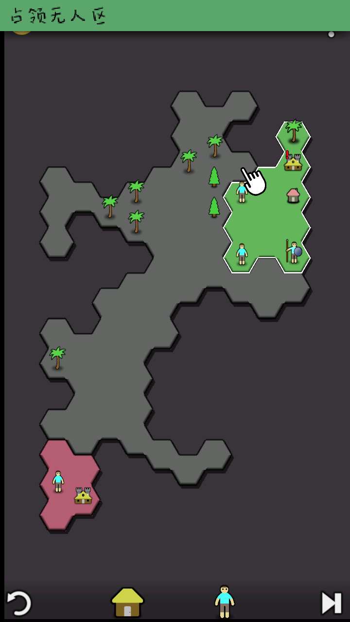 进入游戏后,点击中央开始”按钮即可开启你的征服之旅。系统会引导你完成简明教程,助你迅速熟悉规则。游戏中,绿色代表你的势力,红色为敌方领地。点击小人可移动并砍伐树木获取资源;点击底部建筑图标可建造防御塔、农场等设施强化基地;再次点击单位可训练新兵,相同兵种还能合并升级,提升战斗力。最终目标始终如一:不断扩张,占领更多地块,直至整张地图尽归你手。