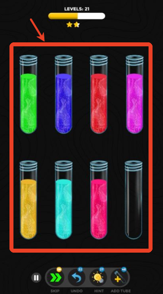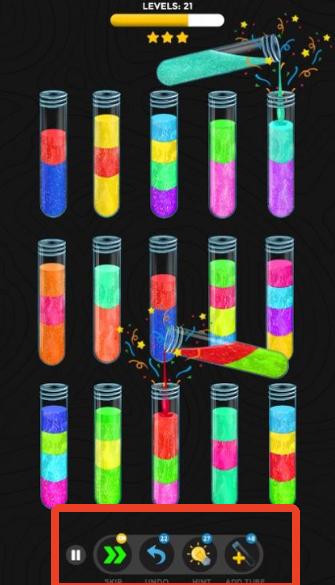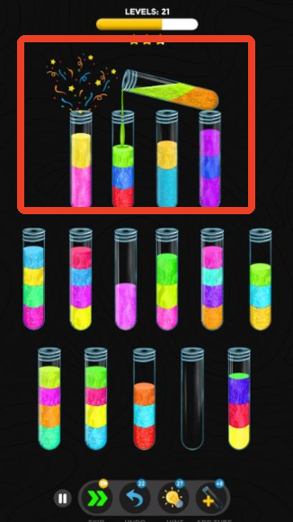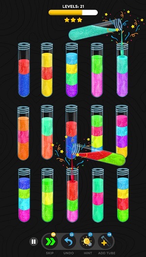 游戏规则直观明了:每个试管只能容纳同一种颜色的粘液,玩家需通过滑动操作,将混合颜色的粘液逐步分离并归类。只需动动手指,就能完成一次逻辑与观察力的双重考验。虽然入门门槛低,但随着关卡推进,颜色种类和试管数量逐渐增加,挑战性也随之提升,带来持续的新鲜感与成就感。