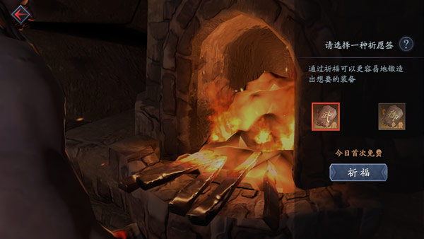 玩家通过消耗锻造材料来获取装备。锻造可选择学徒锻造和名匠锻造”,名匠锻造出精品至珍品的装备或碎片的概率高于学徒。锻造前,每天玩家可以免费祈福一次,通过消耗三种不同的祈愿签,获取锻造装备的优势状态加成。