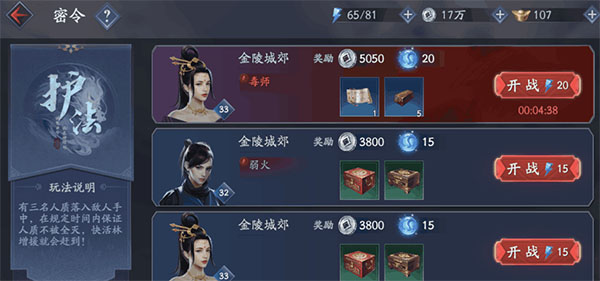 * 目标:保护运镖的旗手不被敌人消灭,沿路线到达指定地点来完成密令。玩家最好和镖手保持比较近的距离,尽量不要离镖手太远,防止出生在镖手后方的敌人。