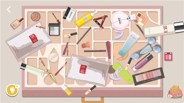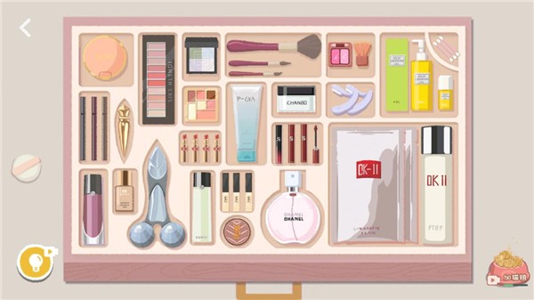 初次进入《往左一点中文版》,只需选择任意关卡即可开启你的收纳冒险。以凌乱化妆箱”为例:所有化妆品散落各处,你需要根据系统提示,将它们一一归位。