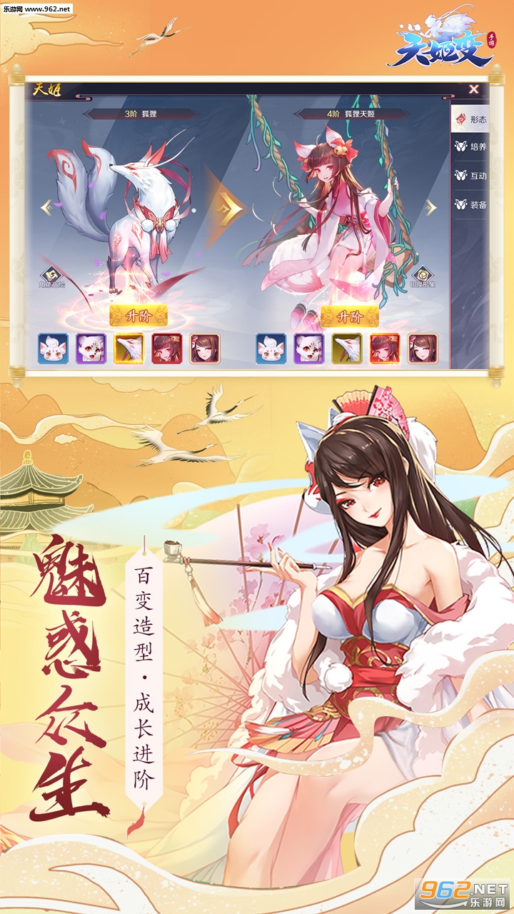 《天姬变》是一款以中国妖灵神怪文化为主题、以唐朝为时代背景的唯美国韵MMO巨制。精致唯美国韵画风,沉浸妖灵奇趣剧情,绚丽特技战斗快感,百变萌宠妖灵相伴,华丽时装羽翼加身,置身万妖国度中,你将扮演灵主与妖兽缔结灵魂契约,体验到妖兽从小小妖灵,逐步进化至强大天姬的全过程,唤醒天姬神技,携手挑战妖王闯荡妖界!