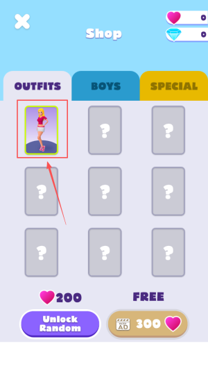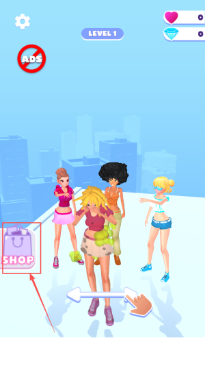2.商店系统:点击"shop"图标进入装扮商城,可自由浏览并选购各类服装配饰。