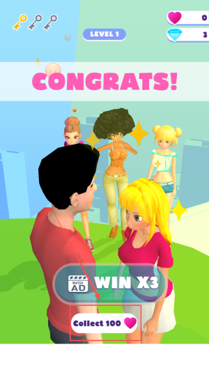 4.奖励加倍:通关后出现"congrats! collect100"提示时,点击"win x3"按钮观看广告,可获得三倍奖励并解锁新关卡。
