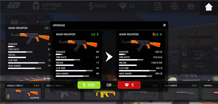 3、拥有的武器还能够进行升级,提升威力。
