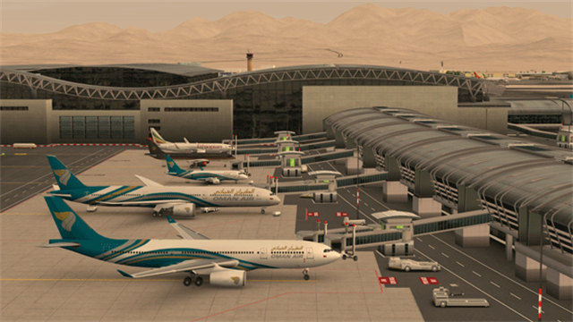游戏中包含了大量的机场设施,如停机坪、跑道、行李转盘、安检区、登机口等。