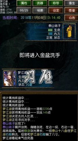 3、采用轻松挂机的游戏模式,无需时刻操作,玩家只需设定好角色的修炼计划与行动路线,即可在忙碌之余,通过简单的点击与策略调整,享受角色自动成长、探索江湖的乐趣