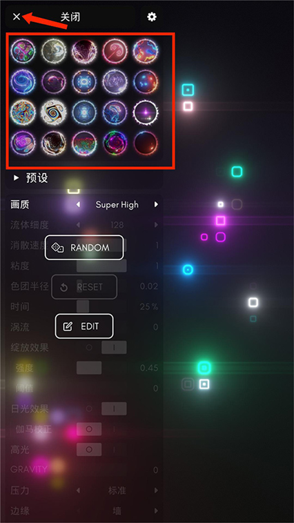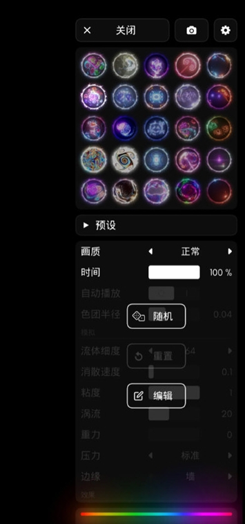 5、内置十几种粒子类型,涵盖液态烟雾火焰星空等,每种都有独特流动质感。