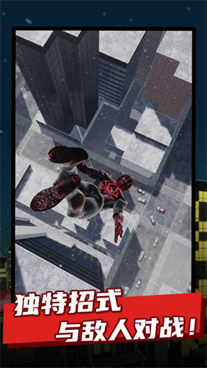 1.玩家在跳跃飞行需要操控好蜘蛛人,建筑高楼间的距离很大,需要小心和稳定跳跃。