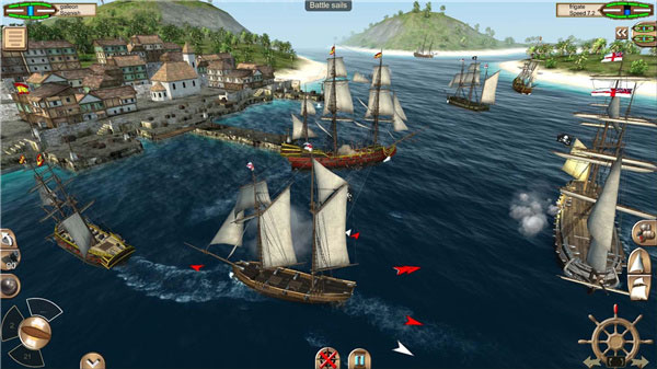 游戏突破传统航海模拟框架,引入多项创新机制:【舰队管理系统】支持多船编队指挥,实现战术协同作战;【弹药机制】提供多种炮弹类型,直接影响伤害输出与战术选择;【角色成长系统】允许玩家升级技能树,强化战斗与贸易能力;【港口建设】赋予玩家打造并升级专属海上基地的自由;【昼夜与天气系统】动态呈现航行中的环境变化,增强沉浸感;【任务与战役】则通过丰富剧情引导玩家逐步扩张势力版图。