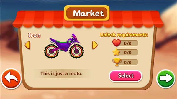 进入游戏后,只需轻点Play”即可开启你的特技之旅。首先从数十款风格迥异的摩托车中挑选你的专属座驾——每辆都拥有独特的外观与性能属性。