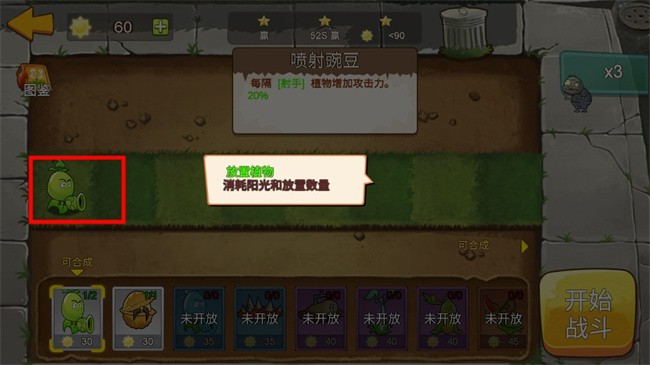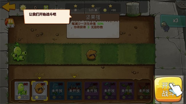 进入游戏后,你将置身于熟悉的花园场景中,点击开始战斗”即可开启你的塔防冒险之旅。