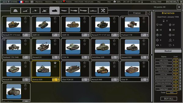 -战役与任务:游戏涵盖了众多二战中的着名战役,如诺曼底登陆、斯大林格勒战役等。玩家可以参与这些历史战役,按照历史的进程进行战斗,也可以在游戏中改变战役的走向,创造属于自己的历史。此外,游戏还有丰富的支线任务和挑战,玩家通过完成这些任务可以获得经验、物资和奖励,提升自己的军团实力。