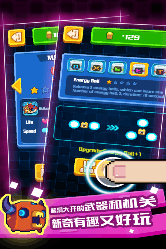 4、游戏还具备了比较完善的成长机制,总体货币收益率比较高,几乎不需要氪金也能愉快地玩耍,游戏可以解锁丰富的人物以及强化人物和技能,每次强化过后能力提升都比较明显,这是很不错的地方