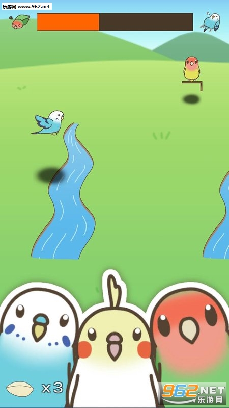 操作可爱小鹦鹉寻找收集饭饭吃饱回家,跳过小河与朋友打招呼吧。