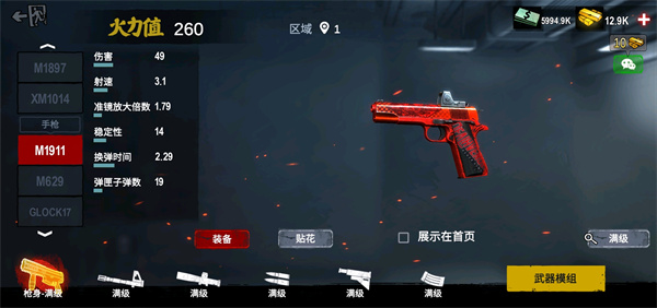 2.第二区域散弹枪XM1014和冲锋枪UMP升级满都能顺利通过该区域。推荐使用散弹XM1014,这把武器能够轻松击杀该区域BOSS。不推荐使用手枪,手枪火力上限不足,可能打BOSS和主线后期会有较大困难。整体无难度,可能会遇到绿色图纸不足的情况,周挑战,军火商,或者直接点击升级金条购买补足都可以解决问题。(散弹升级满大概需要185K钞票)