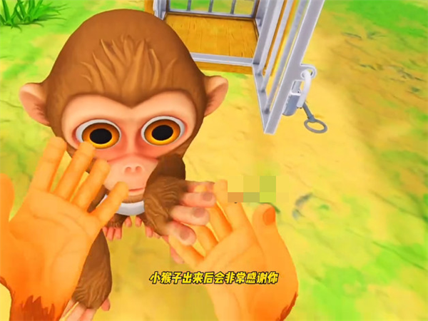 3、小猴子从笼子里出来后,再带着小猴子一起从大象之前待着的那个洞口钻出去,这样就能一起去往外面的广阔世界。