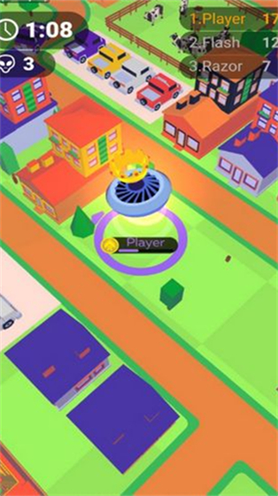 《疯狂太空船外星人战》融合了多种趣味系统:你可以操控飞船自由移动与攻击,体验高自由度的操作快感;通过绑架地球上的生物来提升自身体积与战斗力;在与其他外星人的激烈竞争中,既要扩张又要防御;每局仅2分钟的限时设定,大幅提升紧张感与重玩价值;而丰富多变的地图设计,则确保每次挑战都有全新体验。