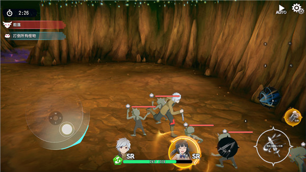 6、进入战斗后,采用横版操作模式:左侧控制移动,右侧执行攻击与技能指令。