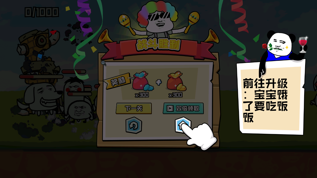 7、回到基地后,可使用奖励资源对表情包进行等级提升,增强战斗力。