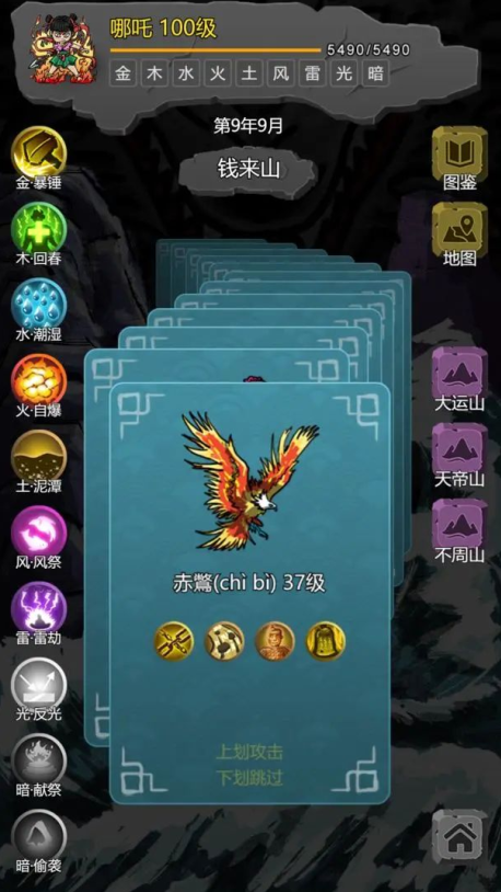 玩家将通过卡牌对战与山海经中的神话生物进行战斗。每张卡牌代表一种神兽、英雄或技能,玩家需要根据敌人的特点选择合适的卡牌组合。通过合理的战术布局和卡牌策略,战胜不同的敌人。