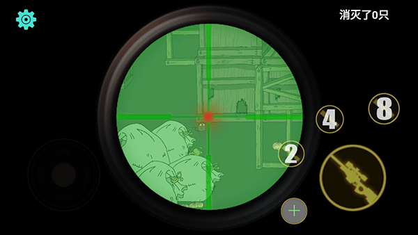 3、点击右边的2,4,8可以放大倍镜,更加方便瞄准老鼠。