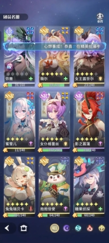 获取方式:通过日常活动和主线推图等获得招募书。心愿单在 100 次招募后解锁,建议每天至少抽到 1 个心愿,最好能抽齐 2 个。如果离 SSR 还差一点,可以用星钻补充。