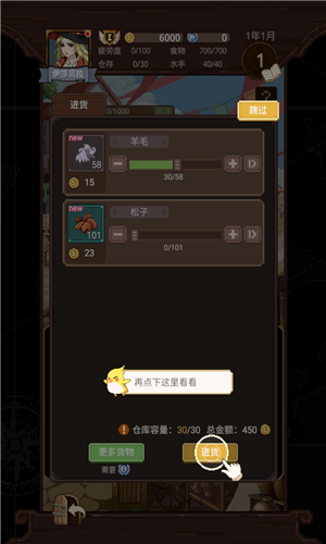 5、点击进货”,购买羊毛。