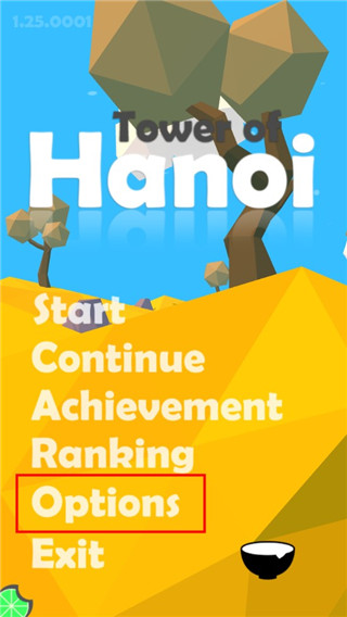 1、下载并安装汉诺塔手机游戏,打开后点击options”选项;