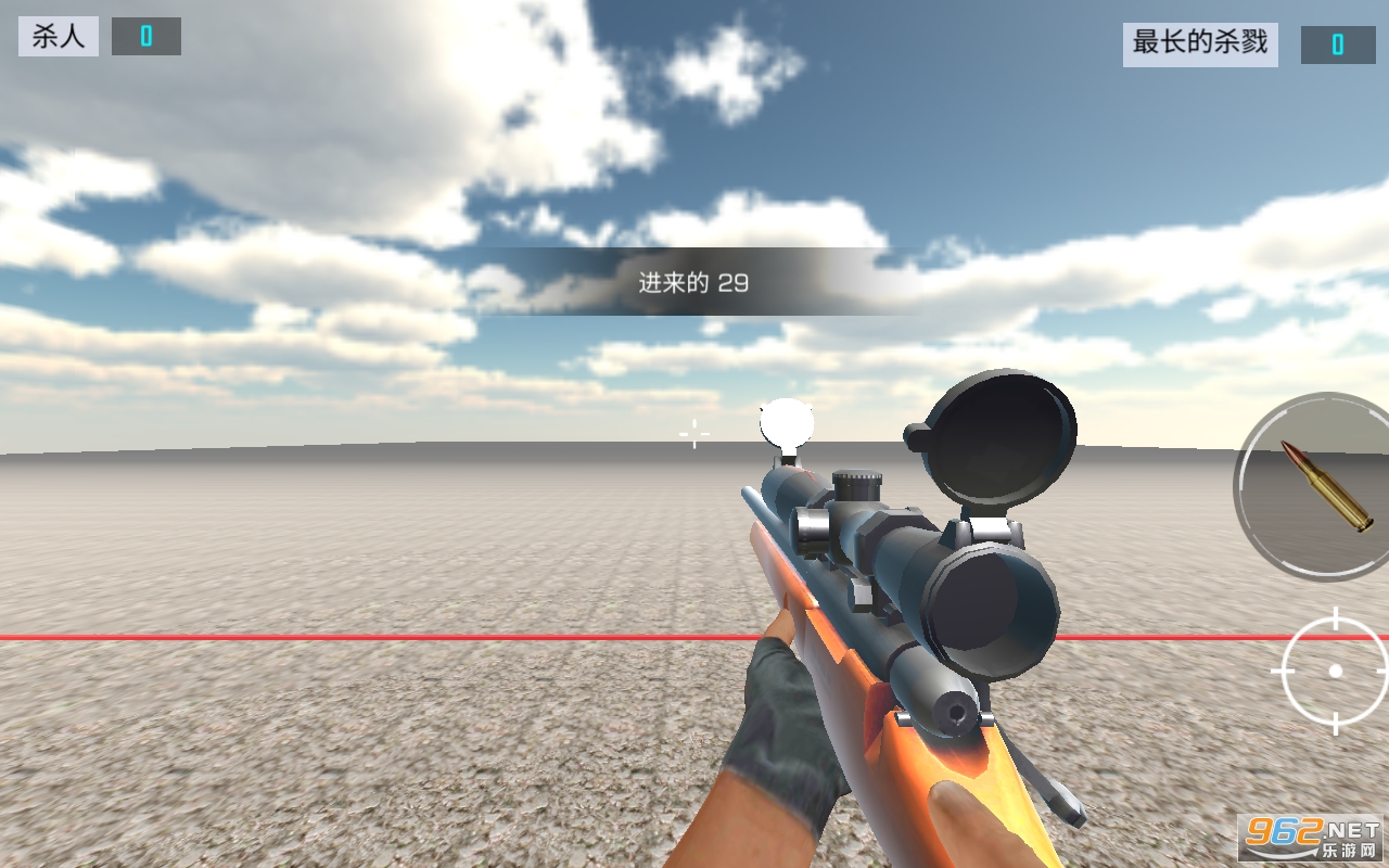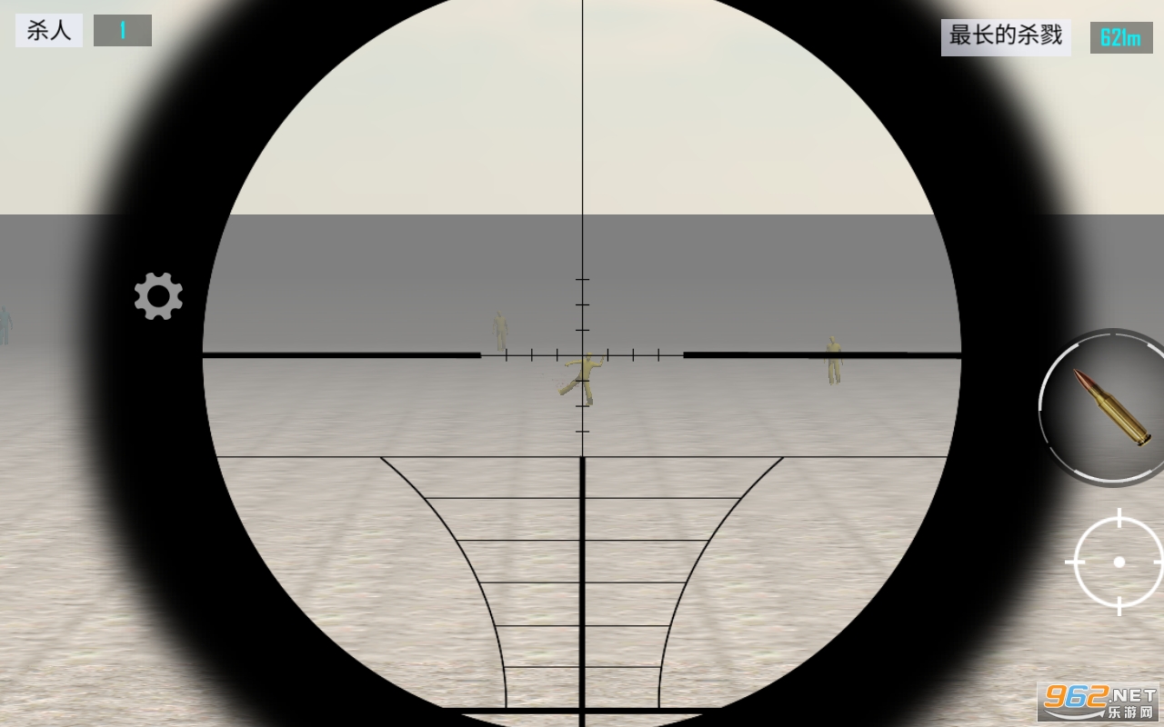 2、玩家通过使用狙击枪,在不同场景自由的射击,击中不同敌人。