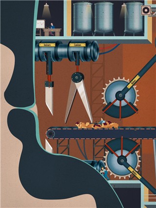这个部分模拟的很有意思,分别是切断食物的铡刀(对应门齿),切碎食物的剪刀(对应犬齿),以及磨碎食物的磨(对应臼齿),把人类牙齿的各部分功能对应的很清楚