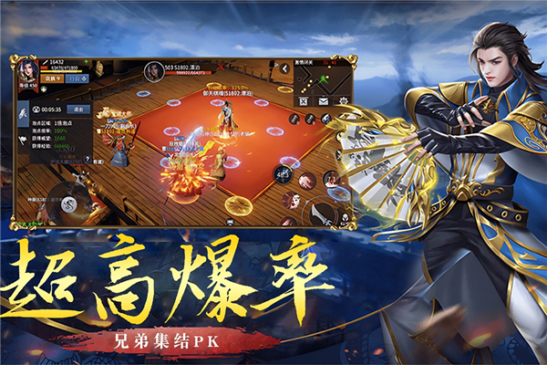 内置师徒结拜、浪漫结婚、行会争霸等多元社交玩法,行会大战中可争夺传说神器破天刀”,持有者将获得全属性增益Buff,成为战场焦点;