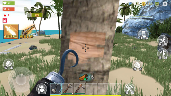 4、玩家砍伐海边的椰子树即可获得木材和食物;