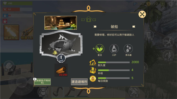 3、在游戏中玩家要及时收集竹子(五个)并砍伐木材(200个)搭建避难所;