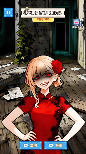 诡异事件簿是一款中式恐怖氛围的益智解谜类型的游戏。玩家需要在恐怖的密室之中搜寻线索破解谜题,任何角落细节都要仔细搜查,因为可以就是一个不起眼的小物件就是解密的关键。要多尝试不同的推理思路,因为有些关卡有多种通关的方式,还要注意游戏角色或者物品是干扰项。每一个关卡都是限时的,所以玩家需要把控好收集线索的时间,必要时刻可看广告获加时或提示道具。