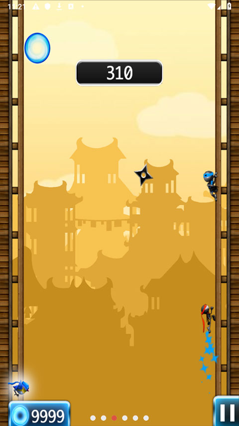 1、玩家操作忍者在两边的平台来回跳跃躲避障碍物,