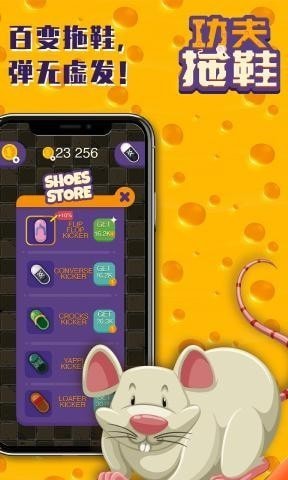 功夫拖鞋是一款既简单又充满乐趣的休闲益智游戏,游戏背景设定在一个充满趣味与挑战的家中,老鼠们趁着夜色偷偷出来觅食,而玩家则需要扮演一位勇敢的守护者,用拖鞋作为武器,消灭这些不速之客。游戏玩法简单易懂,玩家只需点击屏幕,控制拖鞋的方向和力度,精准地击中老鼠即可。