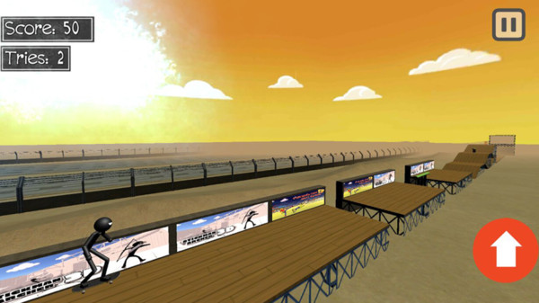 《火柴人极端滑板》独特的游戏方式,休闲的游戏风格,简单的游戏操作,给你带不一样的游戏体验,这是一款火柴人滑板闯关游戏,游戏的操作很简单,只有一个跳跃按钮,点击就可以让火柴人跳跃,但是玩起来是真的虐心,你要非常准确的把握时机,让火柴人能够跳到绿色的板子上边,这样火柴人才能继续滑行下去。在这个游戏中,操控火柴人在这里玩滑板,越过各种类型的关卡,一个个地域的去解锁,去到各种各样的地方去玩滑板,还可以参与各种大小的滑板比赛,争取拿到名次,得到更多的金币,让自己变得更强.如果你喜欢火柴人玩,你会喜欢这个游戏滑板。