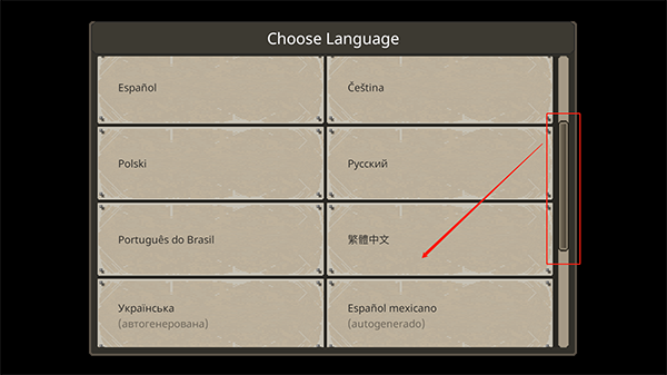 1、初次进入游戏我们需要手动选择语言,下滑找到繁体中文”字样点击即可切换;