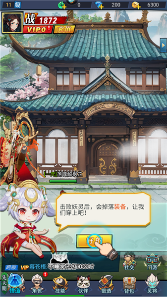 3、击败妖灵后会掉落装备,然后你可以装备上;