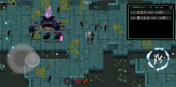 4.在游戏中遇到散发红光的系统错误数据”时,触发开发者模式,可选择攻击力+999(30秒)”最大生命+999(30秒)”等短时增益指令,增强战斗能力。