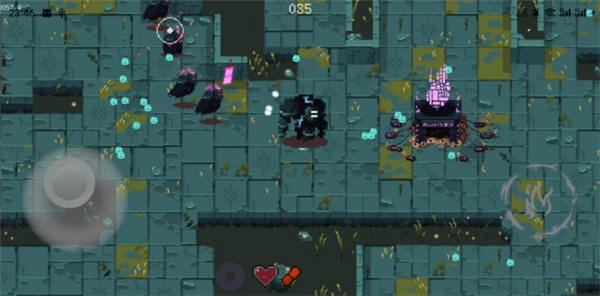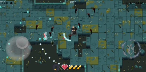 1、通过左侧的虚拟按键来控制角色移动,角色会自动攻击敌人。