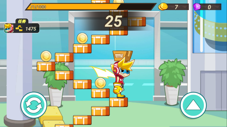 1、游戏玩法与跑酷类的游戏大同小异,但是游戏内还加入了一些新的玩法。