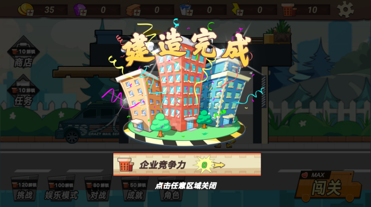 5、游戏结束后,可以用金币来建造房子储存快递