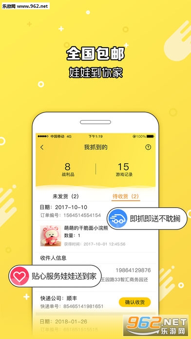 省时省力,抓取的奖品直接快递配送到您手中