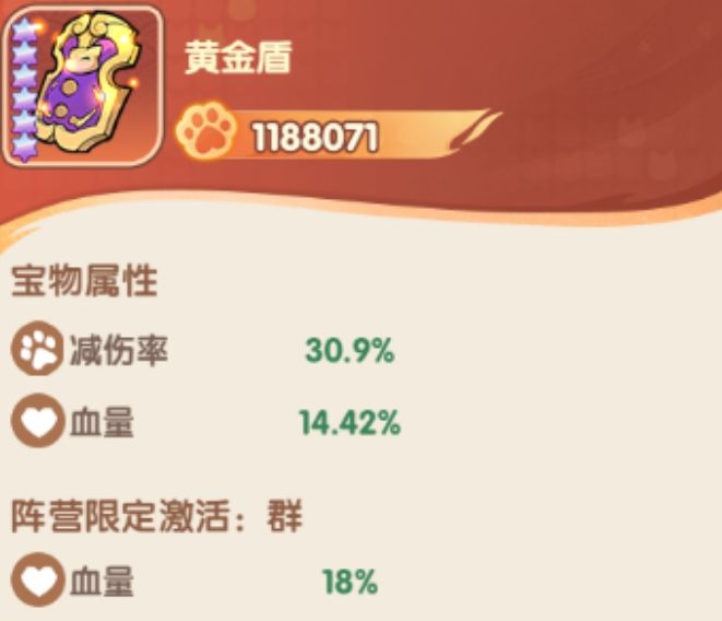 最后宝物可以选择群雄专属的黄金盾,增加大量的血量。